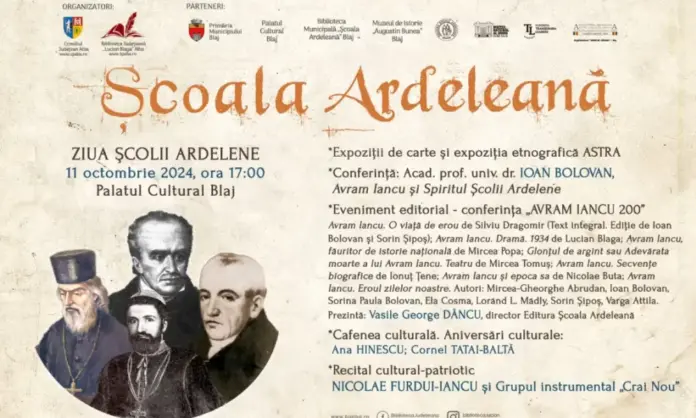 11 octombrie 2024 | Ziua Școlii Ardelene la Palatul Cultural din Blaj: Expoziții etnografice și de carte, conferință Ioan Bolovan și recital Nicolae Furdui- Iancu