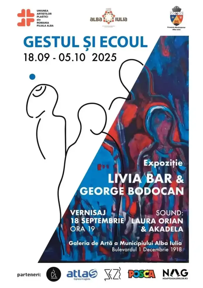 18 septembrie 2025 | Vernisajul expoziției „Gestul și Ecoul”a artiștilor George Bodocan și Livia Bar, la Galeria Municipiului Alba Iulia