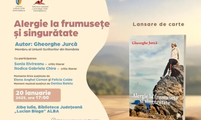 20 ianuarie 2025 | Gheorghe Jurcă își prezintă volumul „Alergie la frumusețe și singurătate”: Lansare de carte la Biblioteca Județeană „Lucian Blaga” Alba