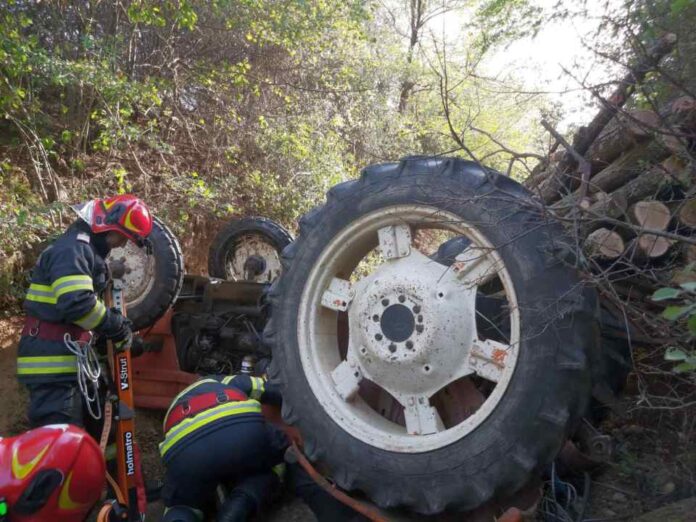 ACCIDENT la Tăuni-Valea Lungă: Un bărbat a fost rănit după ce s-a răsturnat cu tractorul