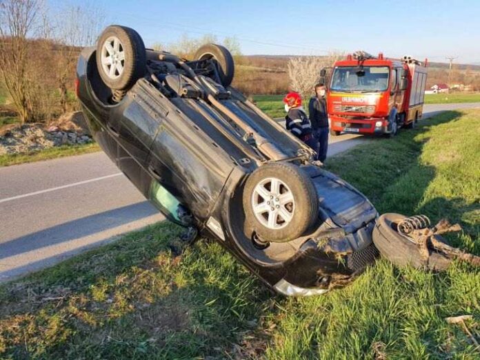 ACCIDENT rutier pe DN 7: Un autoturism a ieșit în decor la Vințu de Jos