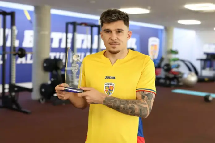 Fundașul naționalei a primit peste două treimi din voturile suporterilor din aplicația Tricolorii, conform informațiilor furnizate de Federația Română de Fotbal.