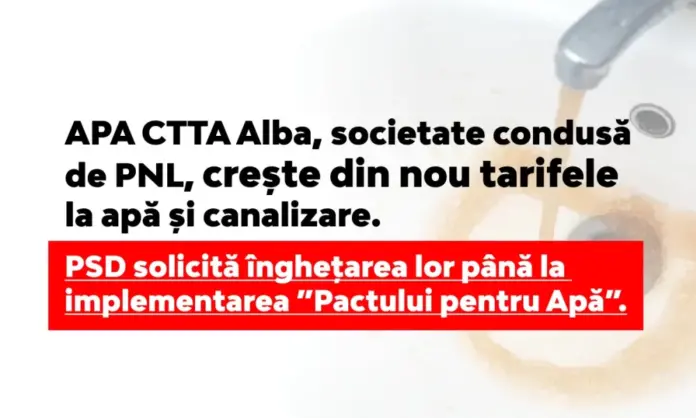APA CTTA Alba, societate condusă de PNL, crește din nou tarifele. PSD solicită înghețarea lor