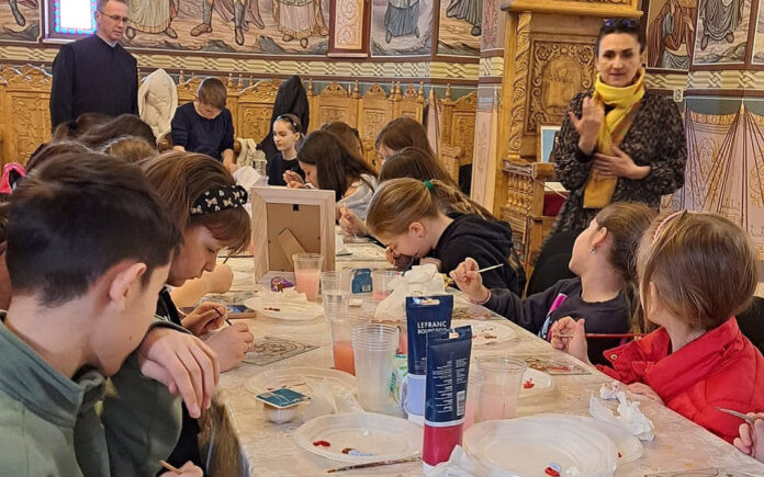 Atelier de pictură pe sticlă, organizat în „Luna pentru Viață”, la biserica parohiei Sfânta-Maria din Blaj