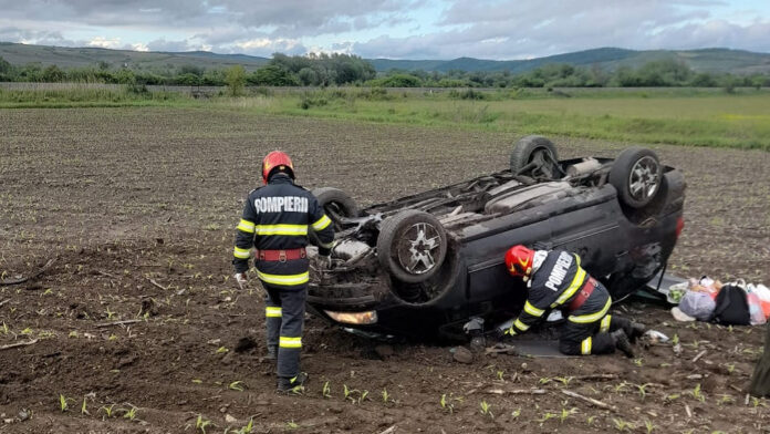 Autoturism răsturnat în afara DJ 107, între Jidvei și Bălcaciu