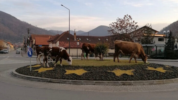 Bărbat amendat cu 500 de lei, după ce și-a lăsat bovinele nesupravegheate pe o stradă din Cugir
