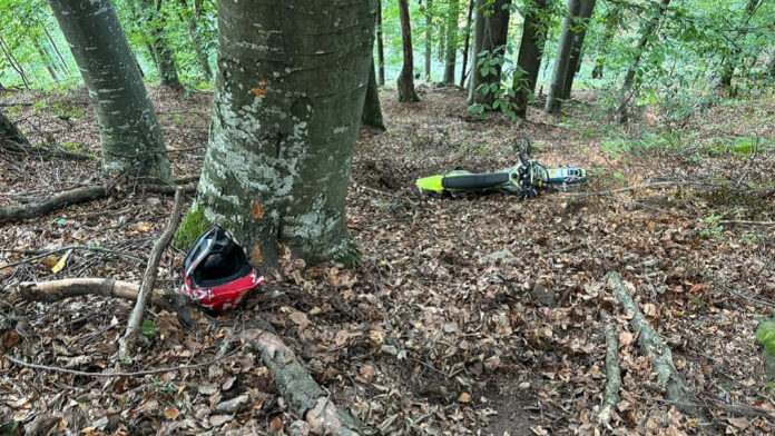 Bărbat rănit, după ce a căzut cu motocicleta pe o pantă abruptă dintr-o pădure situată în apropiere de Căpâlna