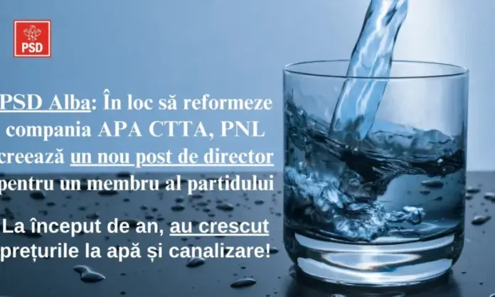 Comunicat de presă | PSD Alba: În loc să reformeze compania APA CTTA, PNL creează un nou post de director pentru un liberal și crește tarifele