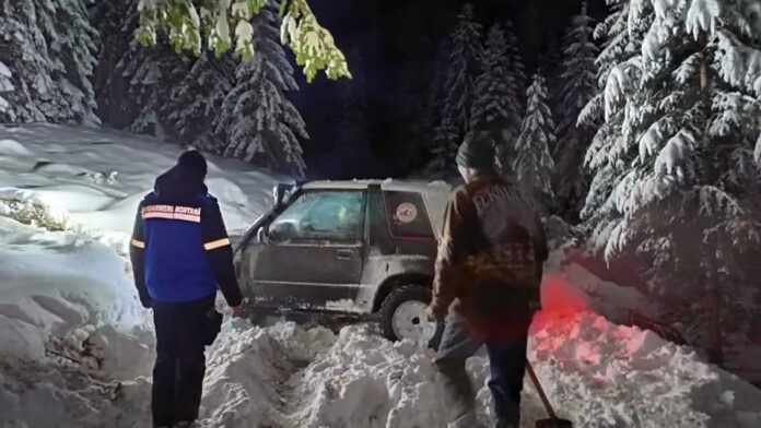 Două persoane au fost salvate de jandarmii montani din Arieșeni, după ce au rămas înzăpezite cu mașina pe un drum forestier din apropiere de Mătișești