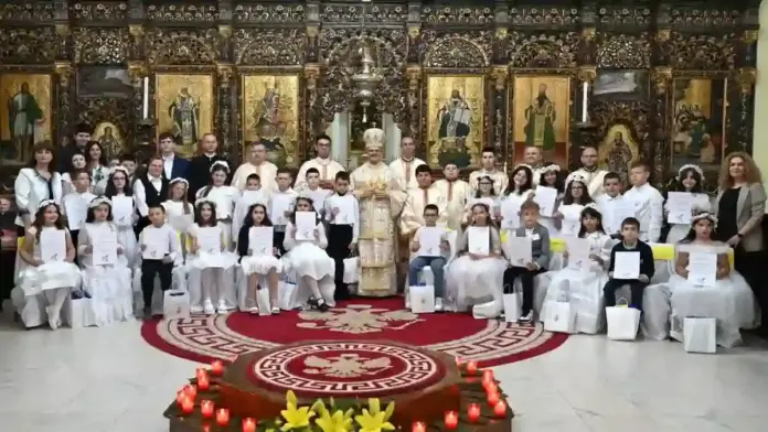 FOTO | 27 de copii au primit prima Sfântă Împărtășanie Solemnă, în Catedrala Blajului