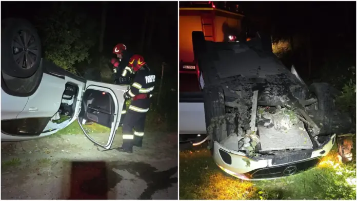 Foto | Accident între Vadu Moților și Poiana Vadului: un autoturism s-a răsturnat. Intervin pompierii