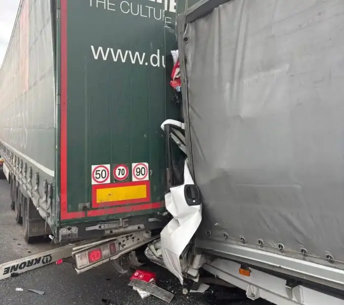 Accident MORTAL pe autostrada A1: Un șofer de 44 de ani a DECEDAT în urma coliziunii violente între o autoutilitară și un autotren