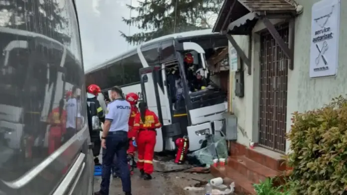 ACCIDENT MORTAL pe DN19: Șoferul unui autocar cu 24 de pasageri a decedat după impactul violent cu zidul unei case