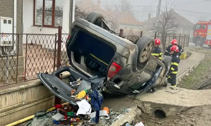 FOTO | ACCIDENT pe DN 14 B, la Teiuș: O persoană rănită după ce un autoturism s-a răsturnat