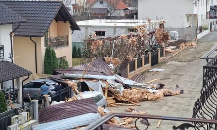 FOTO | Acoperiș doborât de vânt pe strada George Sand din Alba Iulia: A căzut peste 2 mașini