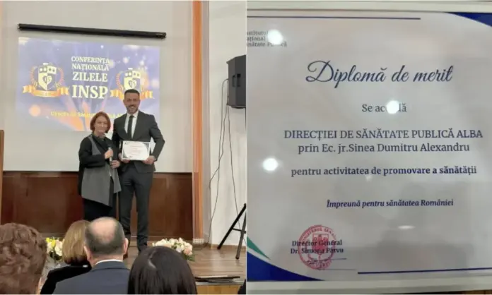 Alexandru Sinea, diploma de merit pentru activitatea DSP Alba, la Gala Zilele INSP: ”Meritele sunt ale întregii echipe, care a demonstrat că poate să facă față oricărei provocări”Alexandru Sinea, directorul Direcției de Sănătate Publică Alba a primit diploma de merit pentru activitatea DSP Alba în cadrul Galei Zilele INSP – 15 ani de la Înființarea Institutului Național de Sănătate Publică.Citește și: Rezultatele controlului efectuat de DSP Alba, după ce un…