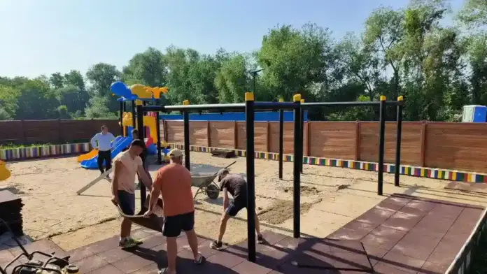 FOTO | Au început lucrările pentru amenajarea unui complex de joacă în curtea Creșei Galda de Jos