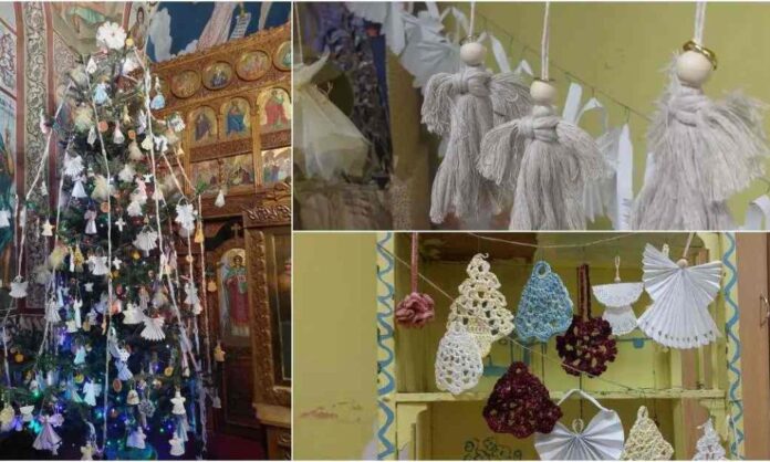 FOTO | Bradul de Crăciun din biserica parohiei Drâmbar, împodobit cu opere de artă: Copiii din comunitate au realizat decorațiuni unice, purtând amprenta bucuriei