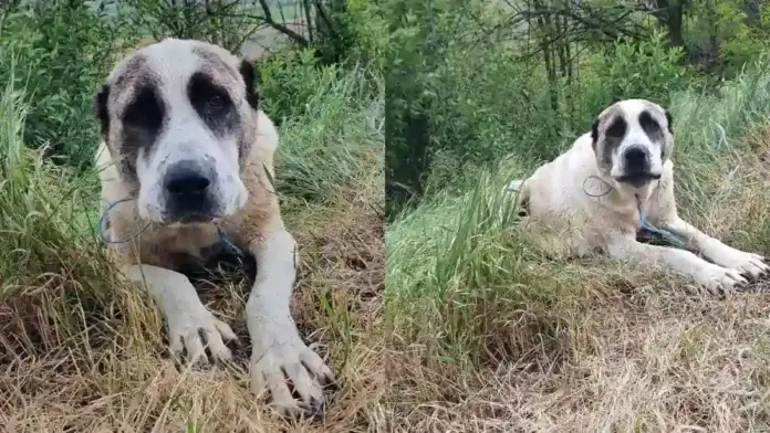 Caz revoltător în zona Câlnic: Cățelușă ciobănesc de Asia Centrală, legată cu sfoară de picioare și aruncată ca un gunoi. Apel urgent