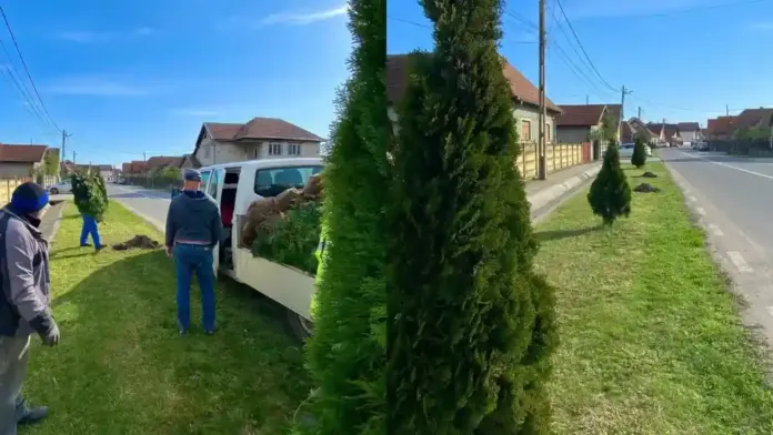 FOTO | Continuă înfrumusețarea satelor din Sântimbru: Aproape 50 de Tuia, plantați în comună. ”Nădăjduim să „prindă rădăcini” în aceste locuri, precum fiecare dintre noi”