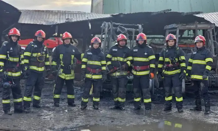 FOTO | Cum a fost evitată o tragedie la o fermă din Alba. Intervenție promptă a pompierilor care au reușit să evite propagarea flăcărilor la 4.000 kg de îngrășământ cu azotat