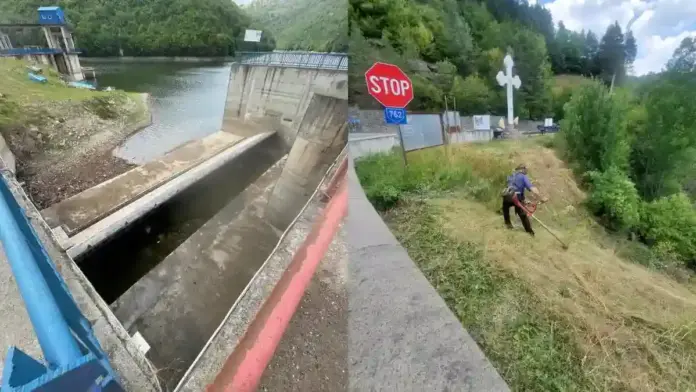 FOTO | Deșeurile plutitoare, îndepărtate din descărcătorul de ape mari al Barajului Mihoești: Ce alte operațiuni au fost realizate de angajații de la Apele Române