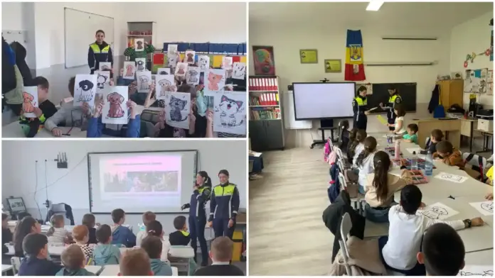 FOTO: Elevii din Săsciori, sesiuni informativ-educative cu polițiștii Biroului pentru Protecția Animalelor Alba. Discuții despre protejarea necuvântătoarelor, responsabilitatea și obligațiile pe care le au cei care dețin animale