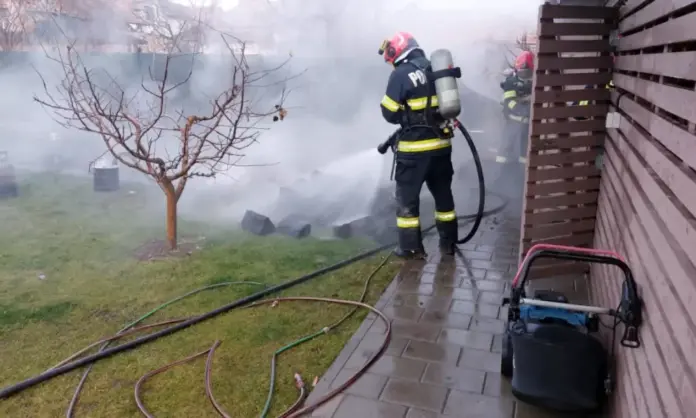 FOTO | INCENDIU în Alba Iulia, la o anexă gospodărească: Un bărbat a suferit arsuri la cap