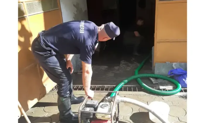 FOTO | Inundație în subsolul unei locuințe din Blaj în urma ploilor abundente. Au intervenit pompierii pentru evacuarea apei