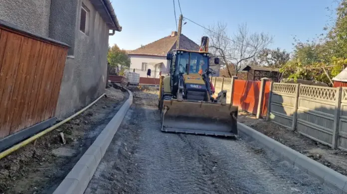 FOTO | Lucrări de modernizare în ritm alert pe strada Parcul Mihai Viteazu din Teiuș. Se lucrează și în curtea școlii primare din oraș