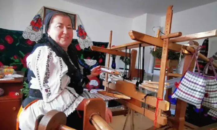 Ileana Balog, o localnică de 59 de ani din Sălciua, duce mai departe tradiția așezării din Apuseni și țese străicuțe, specifice portului sălciuănesc.