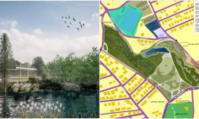 FOTO | Parc de peste 8 hectare în cartierul Micești-Orizont din Alba Iulia: Zone de agrement și lac pentru retenția apelor pluviale