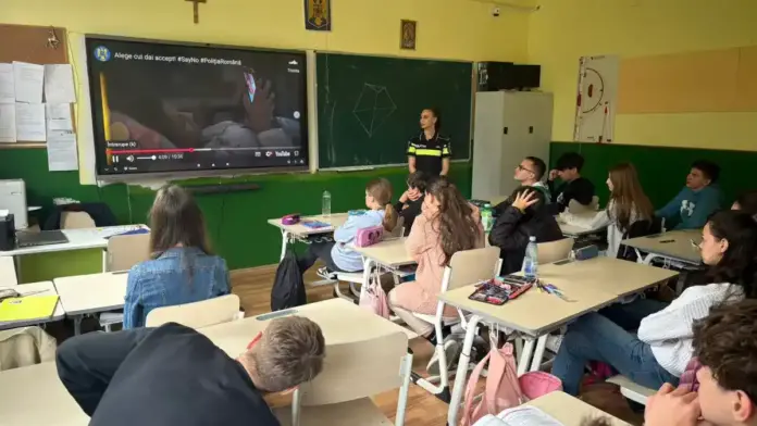 FOTO | Peste 60 de elevi din cadrul Școlii Gimnaziale ,,Axente Sever” Aiud au aflat de la polițiști care sunt pericolele navigării pe internet