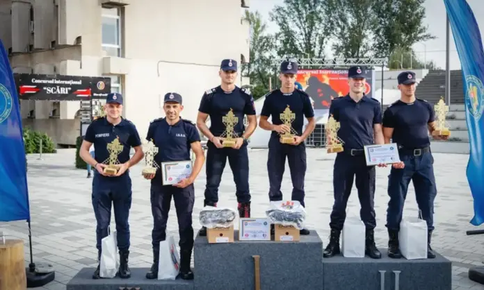 Plt. maj. Popa Ioan și sld. Ivan Marius, de la ISU Alba, au obținut locul I la proba pe echipe a concursului internațional Scări 2024 – Satu Mare.