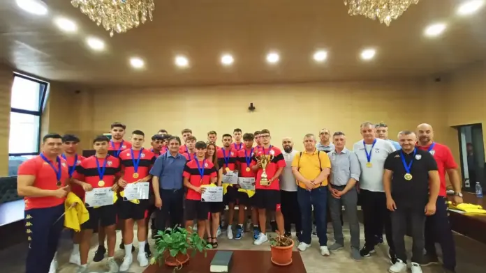 Premiere a echipei de fotbal U19 de la CSM Unirea Alba Iulia: Trofeul, medaliile și tricourile de campioni trimise de FRF înmânate de autoritățile locale