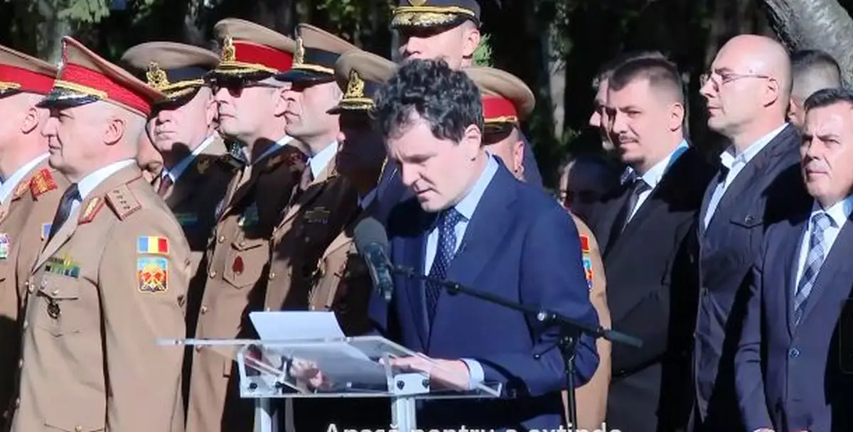 Nicușor Dan a ținut un discurs despre Armata Română, în timp ce pe fundal, din stradă, se auzea…