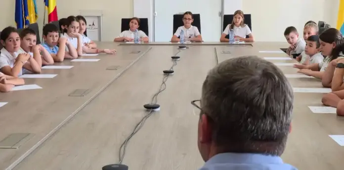 FOTO | Ședință de Consiliu Local „simulată” de elevi de la Școala Gimnazială „Ovidiu Hulea” din Aiud
