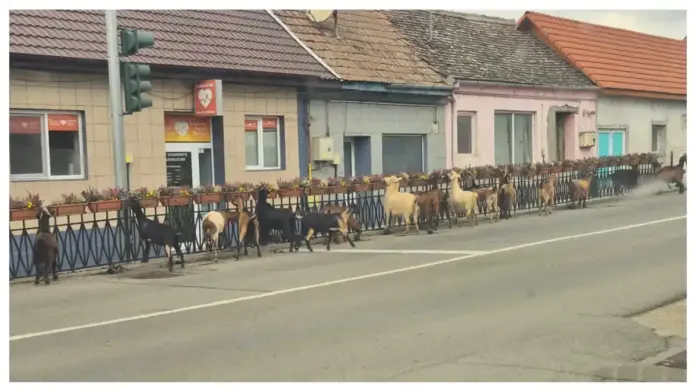 Capre pofticioase, văzute pe o stradă din Blaj, în timp ce ,,degustau” florile de pe garduri: ,,Lapte cu gust de levănțică”