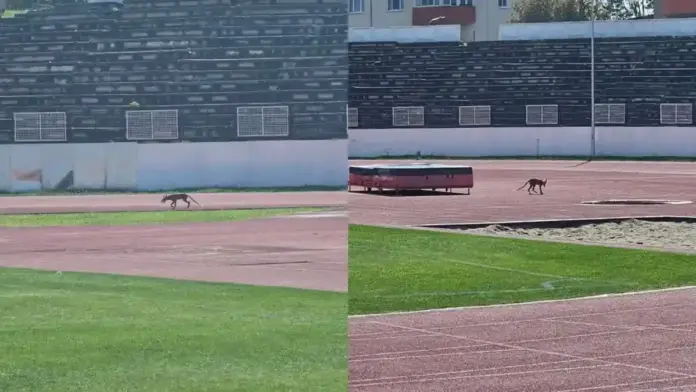 FOTO-ȘTIREA TA | Cumătra vulpe, fascinată de pista Stadionului „Cetate” din Alba Iulia: S-a plimbat printre copiii care se antrenau