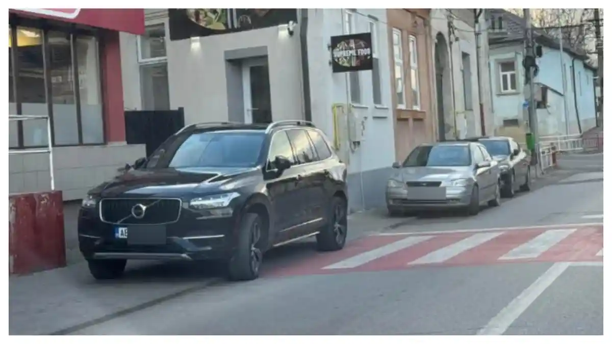O fotografie care surprinde o mașină parcată în fața unei treceri de pietoni a fost publicată, pe o rețea de socializare, într-un grup destinat șoferilor din Aiud.