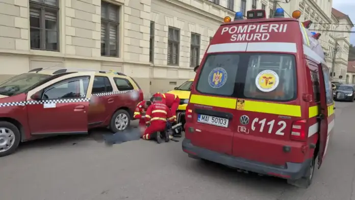 FOTO ȘTIREA TA | Pompierii din Aiud, luptă contracronometru pentru salvarea unui taximetrist: Bărbatului i s-ar fi făcut rău pe stradă și a căzut