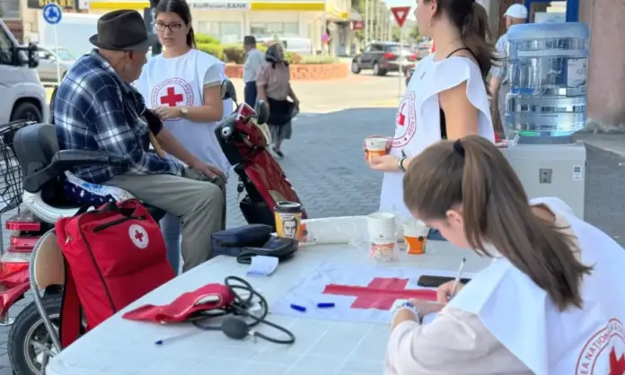 Trei puncte de prim ajutor pe timp de caniculă, amplasate de Crucea Roșie Alba în Alba Iulia și Aiud: Trecătorii primesc apă rece și își pot măsura gratuit tensiunea