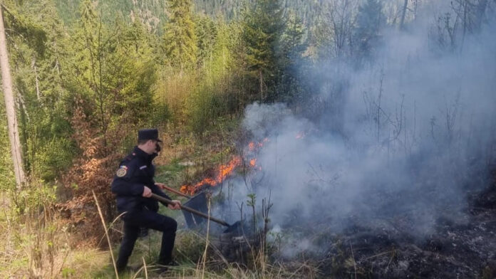 Incendiu de vegetație uscată în satul Lăzești. Intervin pompierii militari din Câmpeni și SVSU Vadu Moților