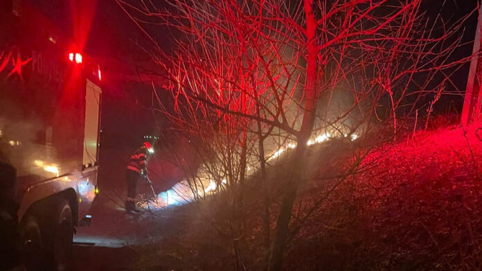 AcasăStiri AlbaStiri BlajIncendiu de vegetație uscată la Crăciunelu de Jos. Intervin pompierii militari din...