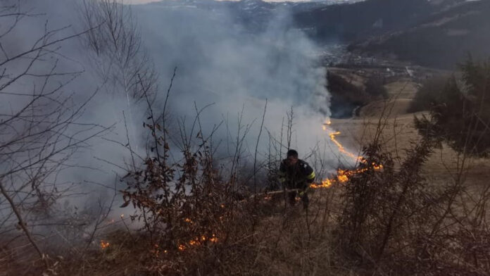 Incendiu de vegetație uscată și mărăciniș, izbucnit în comuna Sălciua. Intervin pompierii militari din Câmpeni