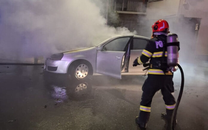 Incendiu izbucnit la motorul unui autoturism. Au intervenit pompierii militari din Sebeș