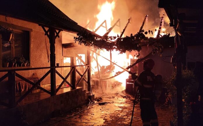 Incendiu izbucnit la o anexă gospodărească, pe strada Caisului. Au interveiut pompierii militari din Blaj