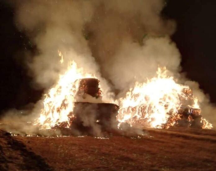 INCENDIU la baloți de fân în localitatea Vingard din comuna Șpring: Pompierii din Sebeș intervin cu trei autospeciale