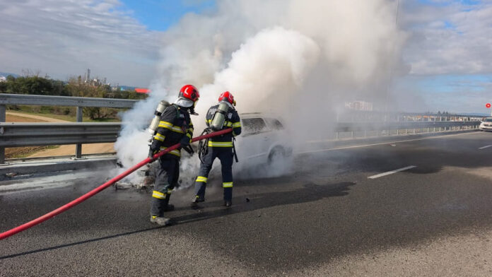 Incendiu produs la motorul unui autoturism, pe breteaua de intrare din A10 spre A1, sens Sebeș-Sibiu