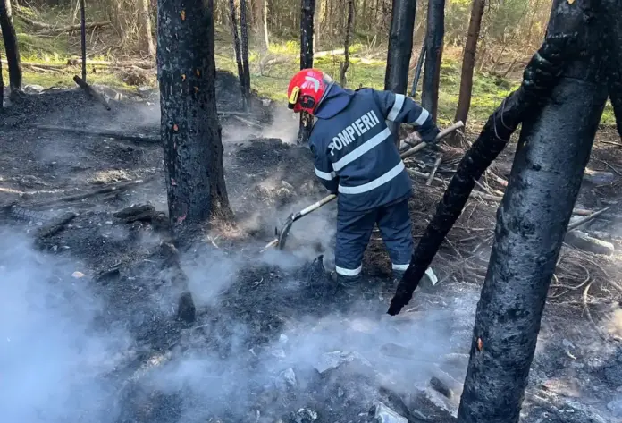 INCENDIU vegetație uscată și litieră de pădure la Ciuldești, în comuna Bistra: Intervin pompierii din Câmpeni